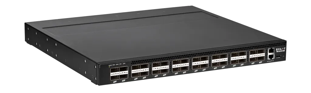 Уникальной особенностью коммутатора является рекордная плотность портов — 32 интерфейса 100GE в компактном 1U-корпусе. Это решение позволяет максимально эффективно использовать пространство в серверных стойках, обеспечивая при этом высокоскоростное подключение большого количества устройств.
