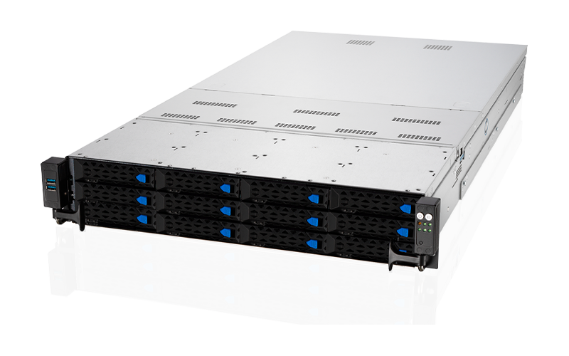 Система хранения предлагает высокую плотность и гибкость: доступно 12 отсеков под накопители форматов 3,5″ и 2,5″, совместимых с интерфейсами NVMe, SAS и SATA HDD/SSD, с поддержкой горячей замены — это позволяет проводить обслуживание, модернизацию или замену дисков без остановки сервера, обеспечивая непрерывность работы критически важных сервисов. Дополнительно реализовано два разъёма M.2, совместимых с PCIe 4.0 и SATA, что позволяет использовать сверхбыстрые NVMe-накопители для установки операционной системы, кэширования или запуска приложений с минимальными задержками, а также классические SATA-накопители для резервных задач.
