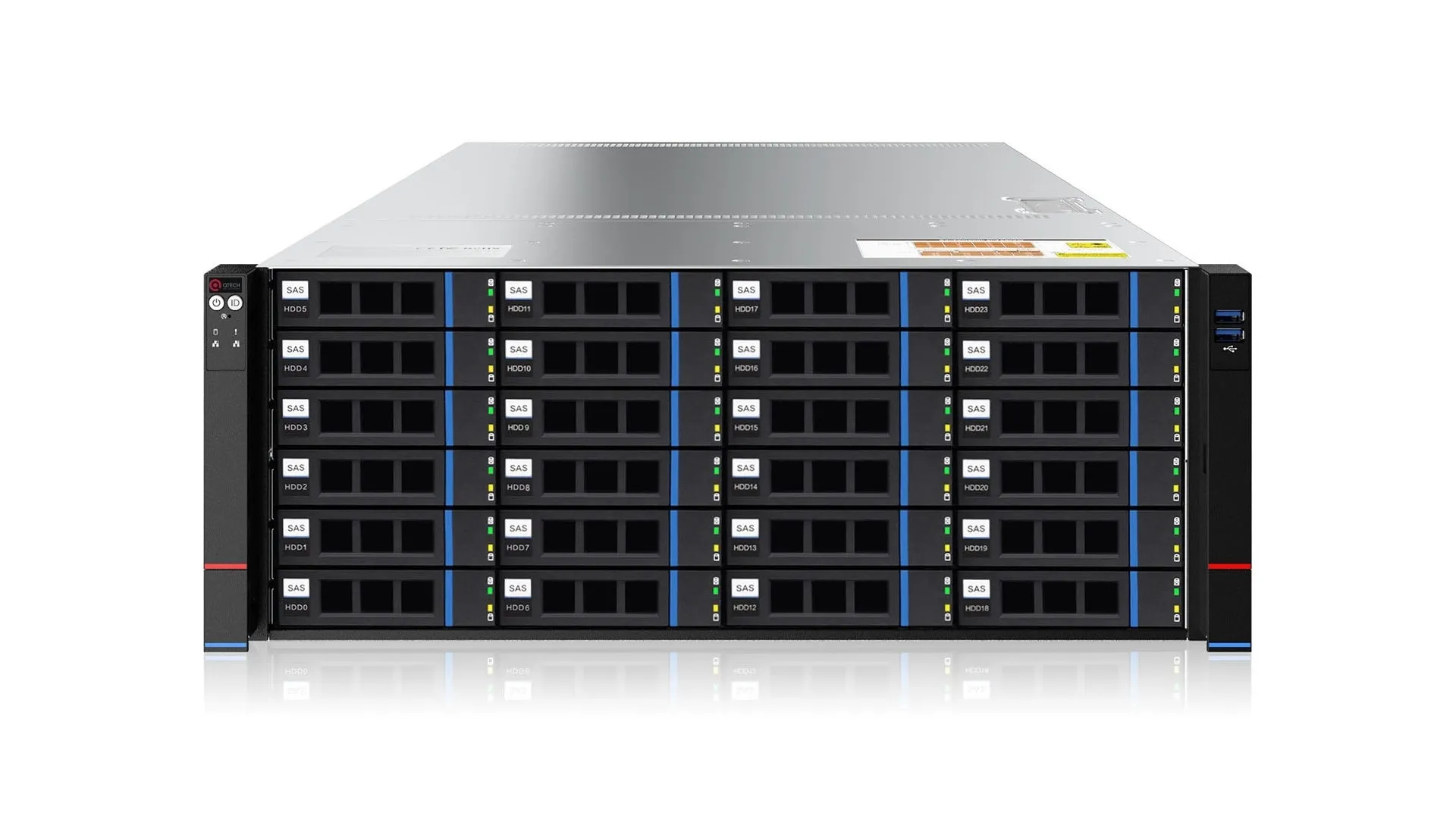 Подсистема памяти включает до 24 слотов для модулей DDR4 с поддержкой частот 2400, 2666 и 2933 МГц, что обеспечивает высокую пропускную способность и стабильную работу при интенсивных нагрузках. Система хранения предлагает высокую плотность и гибкость: поддерживается до 36 накопителей формата 3,5″ или 2,5″, совместимых с интерфейсами SAS и SATA, включая HDD и SSD. Дополнительно реализовано 8 слотов для дисков 2,5″ с поддержкой горячей замены, расположенных сзади корпуса, что обеспечивает удобный доступ при обслуживании и минимизирует простои. Для удалённого управления предусмотрен выделенный 1 Гбит/с порт, работающий по протоколу IPMI/BMC, с полным функционалом — включая мониторинг, диагностику, перезагрузку и настройку оборудования вне зависимости от состояния операционной системы. Все функции доступны без необходимости приобретения дополнительных лицензий, что снижает общие затраты на владение.