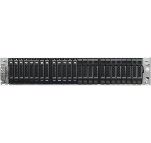 Каждое двухконтроллерное шасси работает в режиме active-active, гарантируя непрерывность работы даже при выходе одного из контроллеров из строя, а три FrontEnd-порта на каждый контроллер обеспечивают надежное и быстрое подключение к вышестоящим системам. Одно шасси способно вместить до 1300 накопителей различных типов — включая SSD, SAS и NL-SAS, что позволяет гибко формировать хранилище с учетом требований к скорости, объему и стоимости.